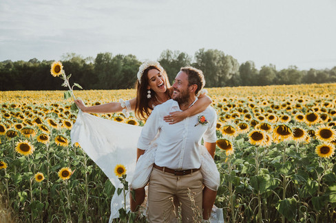 Tom and Sarah had their wedding postponed not once but twice due to covid. Such an upsetting time for everyone! So when they finally arrived in South West France with their family and friends it was extra special. Sarah looked divine in her festival inspired outfit. On the way to the venue I spotted the field full of sunflowers so persuaded them to get in a car and drive up the road. It was so worth it - thankfully we could find a guest to drive who wasn't to squidgy!